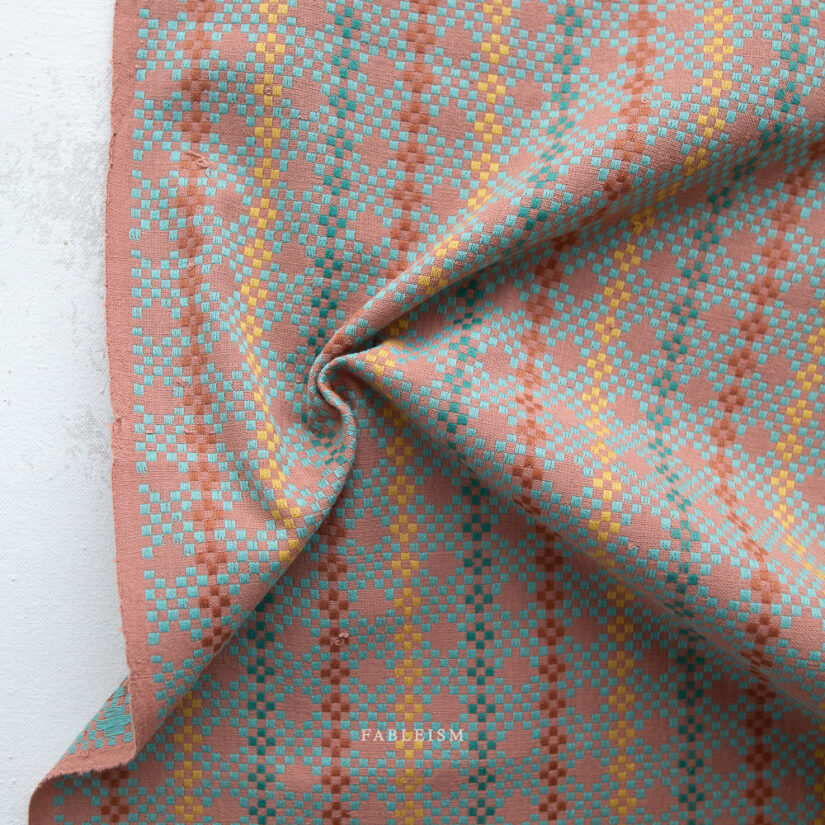 Canyon Springs is Fableism Supply Co’s latest mixed weight wovens collection featuring new textures, new weaves, and some returning favorites. Inspired by the vastness of the grand canyon and its full spectrum of life and color. The colors are a punchy mix of hues from golden ochre to deep periwinkle and crisp turquoise. Shipping to shops March 2024.