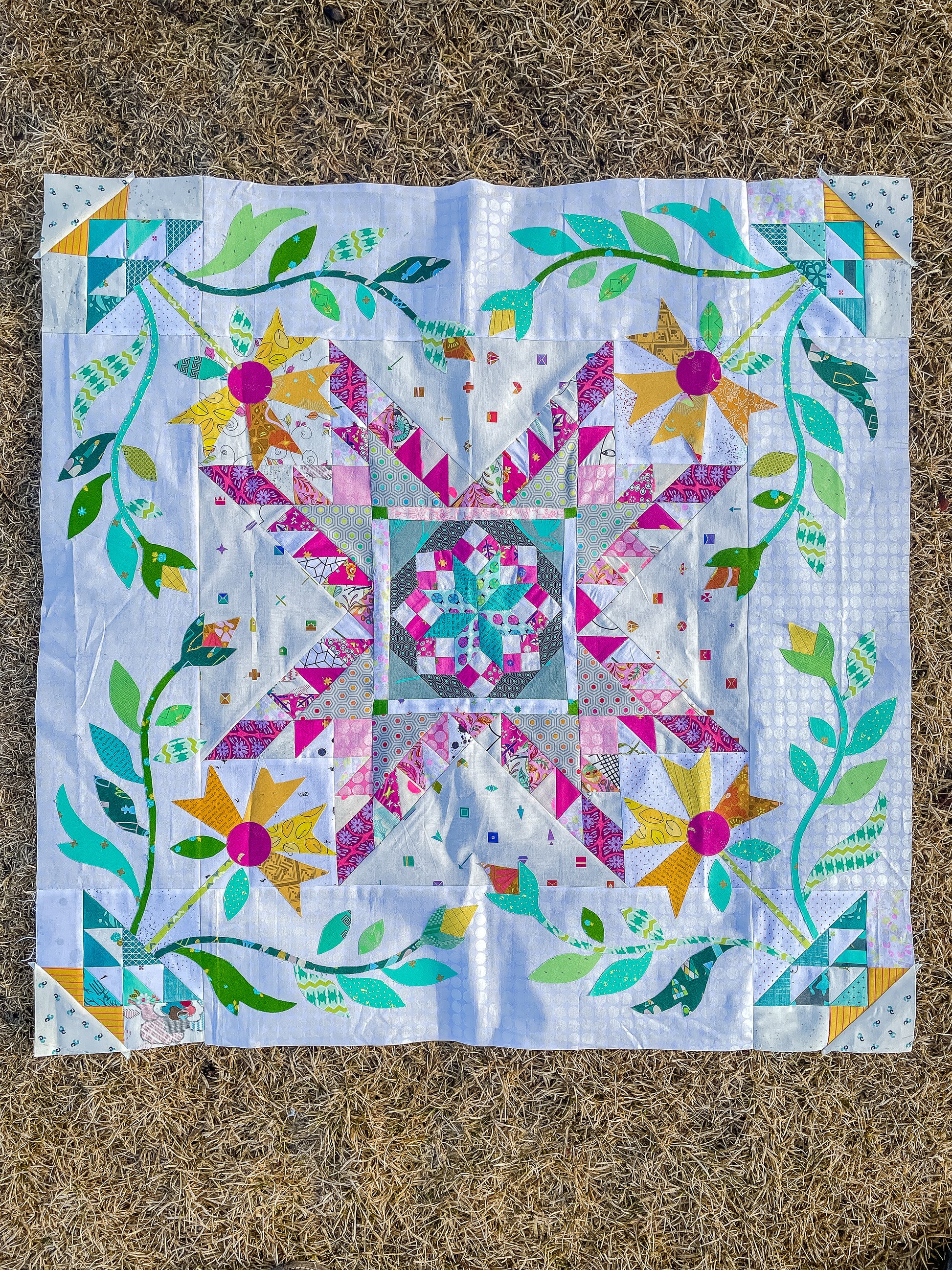 Get started on this stunning quilt in this four week class. We’ll learn to cut precisely, sew y-seams, applique, and more. You likely won’t finish your project, but you’ll have all the required skill to finish.