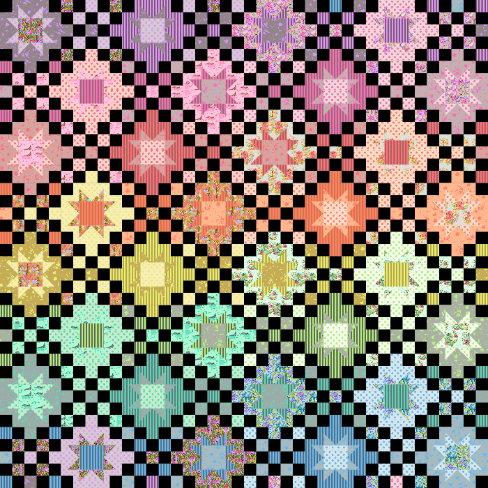 Flicker is a great pattern for confident beginners. It's made up of two main blocks; a star block and a checkerboard block. Sizes offered are: Small Throw 50"x50", Large Throw 75"x75", and King 100"x100".