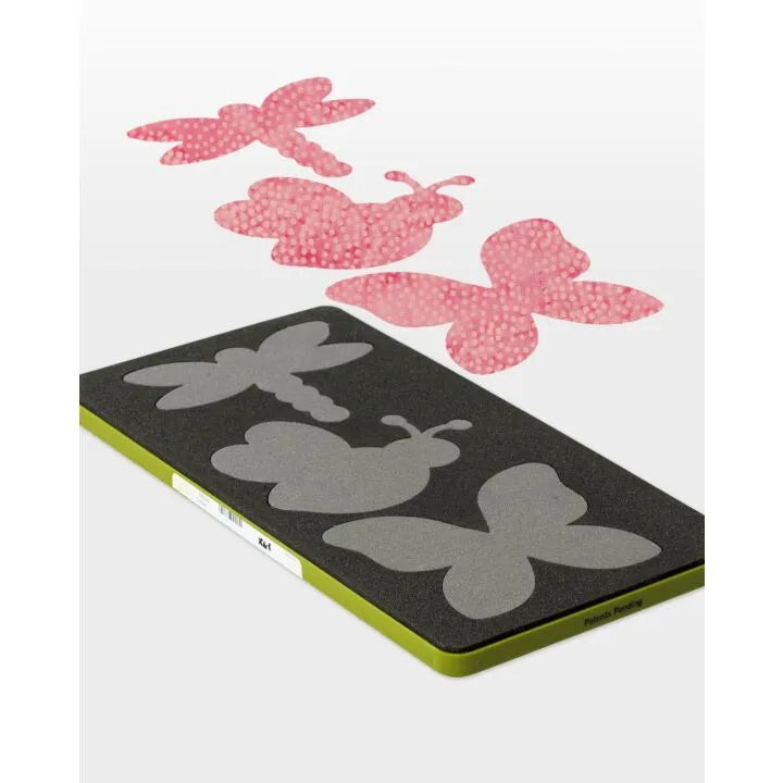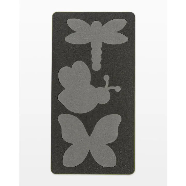 Make adorable fabric projects big and small with the GO! Critters die. This die perfectly cuts a dragonfly, bee and butterfly for versatile baby cuteness!