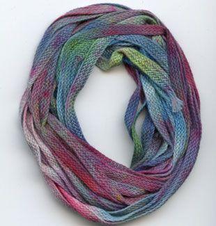 'Hand-Painted' in Germany using a 'secret technique', Ribbon Floss Cotton is a softly braided organic cotton tape and can be manipulated to achieve a multitude of amazing textural effects. Ribbon Floss Cotton can be used as a ribbon or tape, laid flat and adorned with stitchery over, on or around it. Create textural depth by using for wrapped stitches or ruche by pulling one of the braided threads and shape into dimensional textural elements.