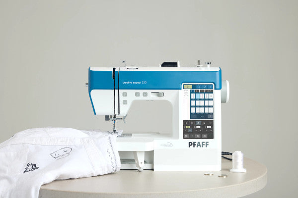 The PFAFF® creative expect ™ 350 sewing and embroidery machine has modern features making it possible to create customized design layouts, make unique stitch sequences, personalize with fonts, and much more with ease on the large 7" color touch screen. The Wifi capability offers design options that can allow you express your style in almost limitless ways.