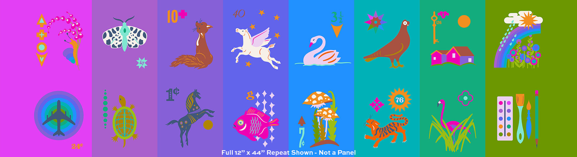 Alison's signature colours and favourite motifs appear in this bold and cheerful line of fabrics perfect for all colour lovers.
