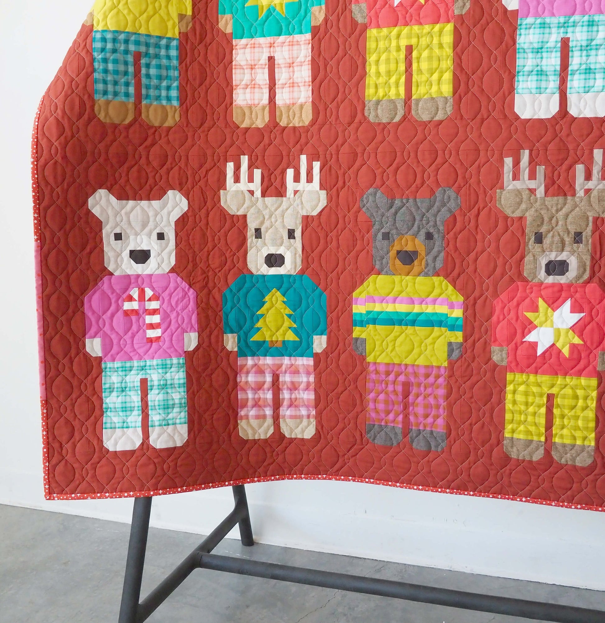 The animal faces, sweaters, and pants are made using a combination of fat quarters and fat eighths. The pattern also includes detailed lists of the pieces needed for each block component, so it’s easy to substitute scraps and use what you have.