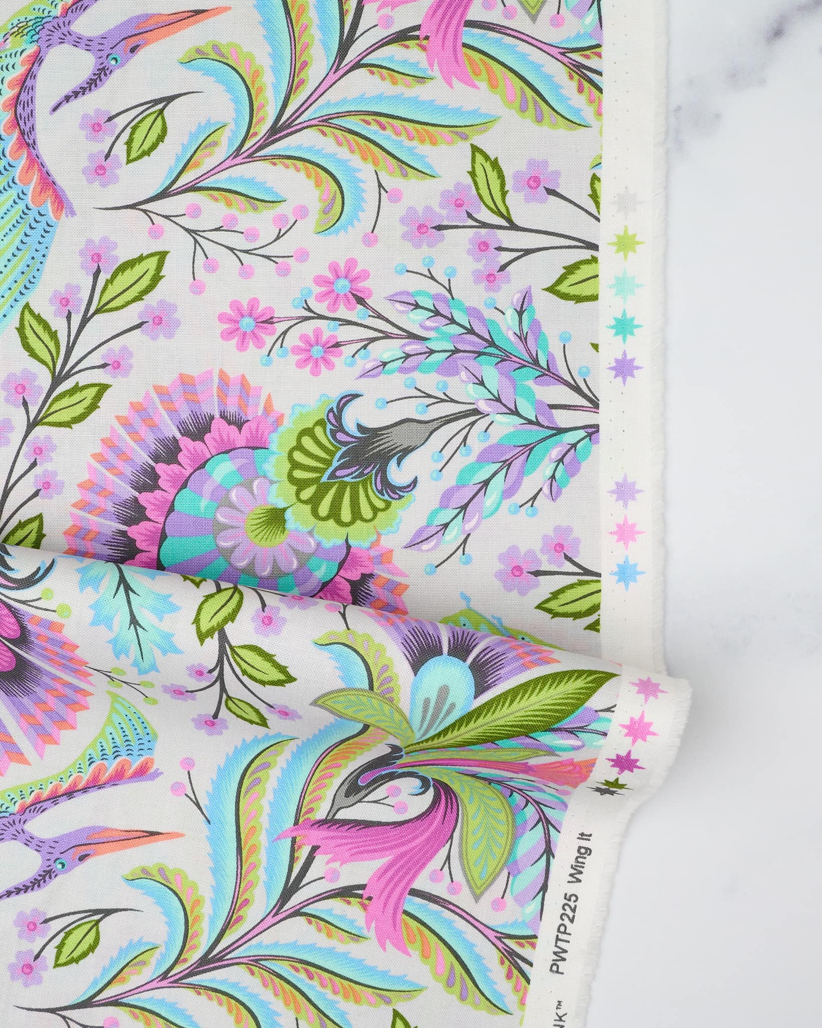 Everything that I do as a fabric designer is about indulging my childhood fantasies. I try to hold on to all of the things that we so easily let go of as we grow up like wonder, amazement, creative logic and delight. Typically, dinosaur fabrics are for children and I don't know who made that decision but I wildly disagree. Roar! is whimsical take on fancy dinosaurs for those of us who keep one foot firmly planted in fantasy. My prehistoric landscape is drenched in details and color. Here you will find a sophisticated T-Rex in a topiary, A Triceratops out for a stroll on a windy parkway path, Happy little hidden Raptors in a dainty damask and Pterodactyls taking time to smell the flowers. It's just your average lazy afternoon in the garden with the giants of Earth's history.
