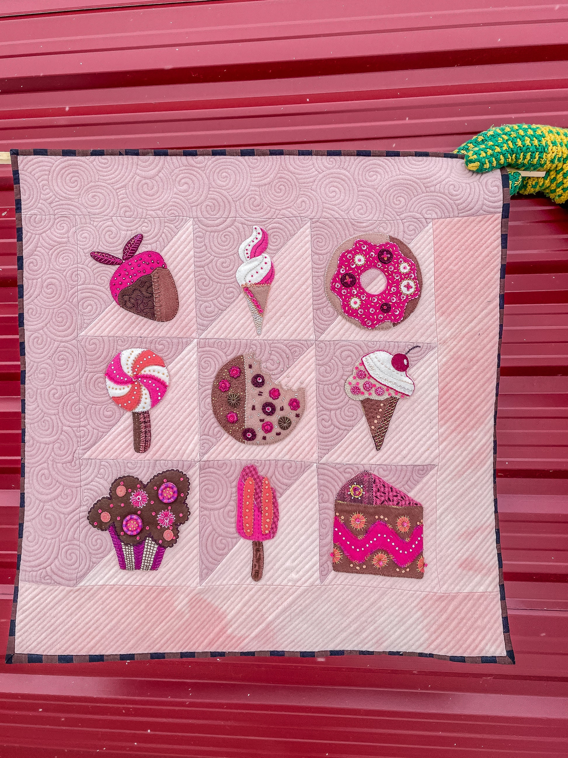 Chocolate and strawberries and sugar... and fabric and thread! Stitch these delicious dessert-themed blocks, sure to make even the worst day better.