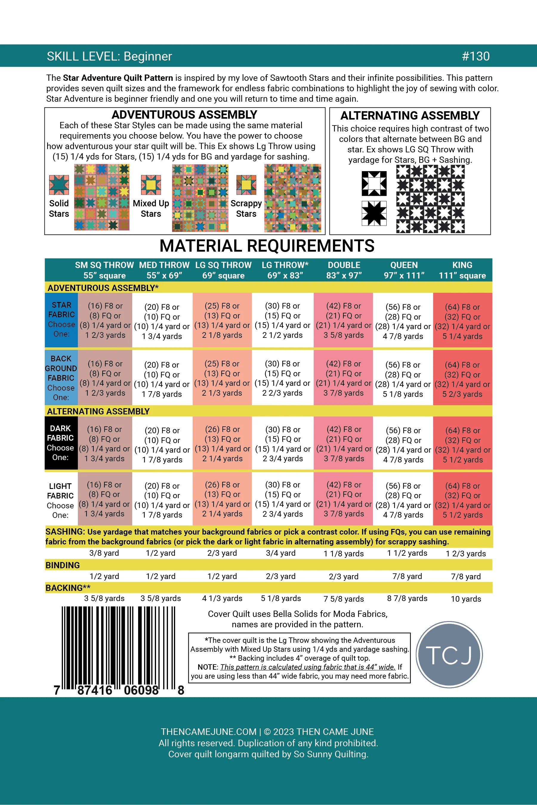 The Star Adventure Quilt Pattern is inspired by my love of Sawtooth Stars and their infinite possibilities. This pattern provides seven quilt sizes and the framework for endless fabric combinations to highlight the joy of sewing with color. Star Adventure is beginner friendly and one you will return to time and time again.