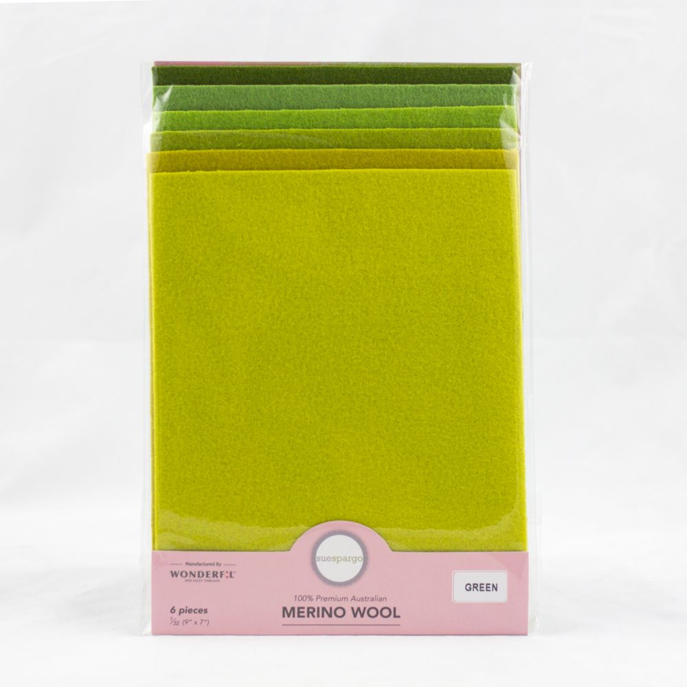 Sue Spargo Wool Fabric - 1/32 Wool Fabric Pack - 9" x 7" - Green