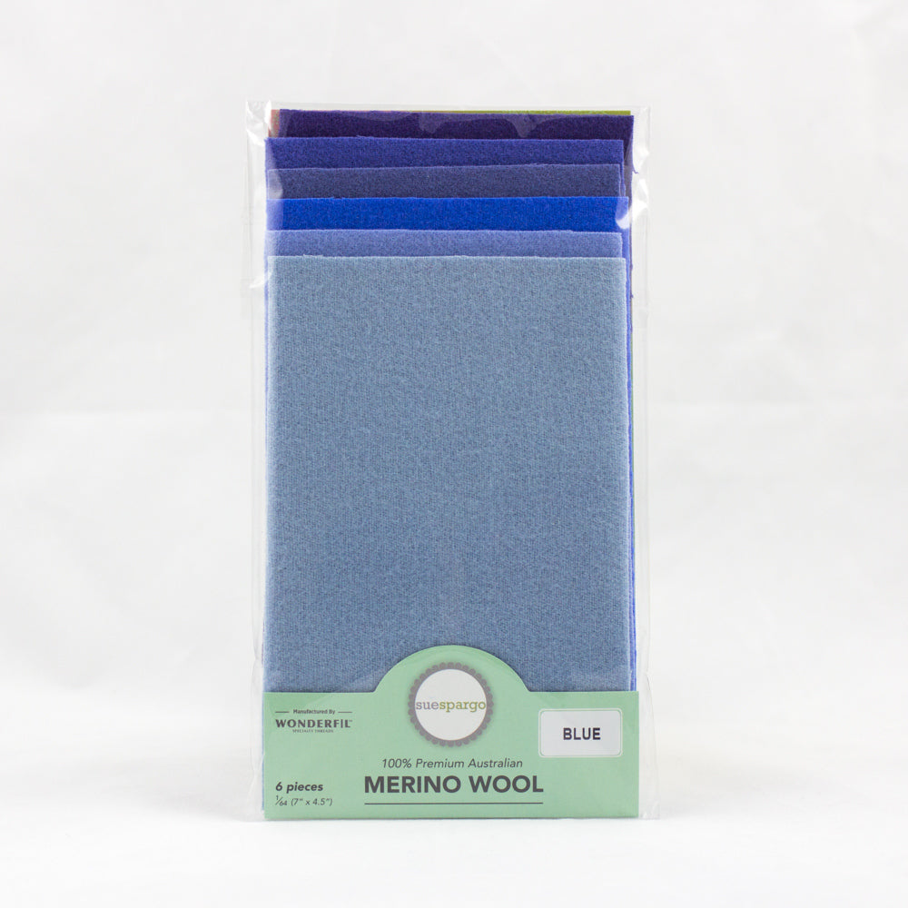 Sue Spargo Wool Fabric - 1/64 WooL Fabric Pack - 7" x 4.5" - Blue