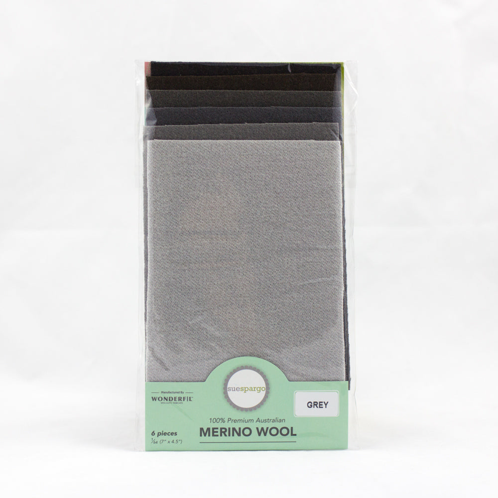 Sue Spargo Wool Fabric - 1/64 WooL Fabric Pack - 7" x 4.5" - Grey