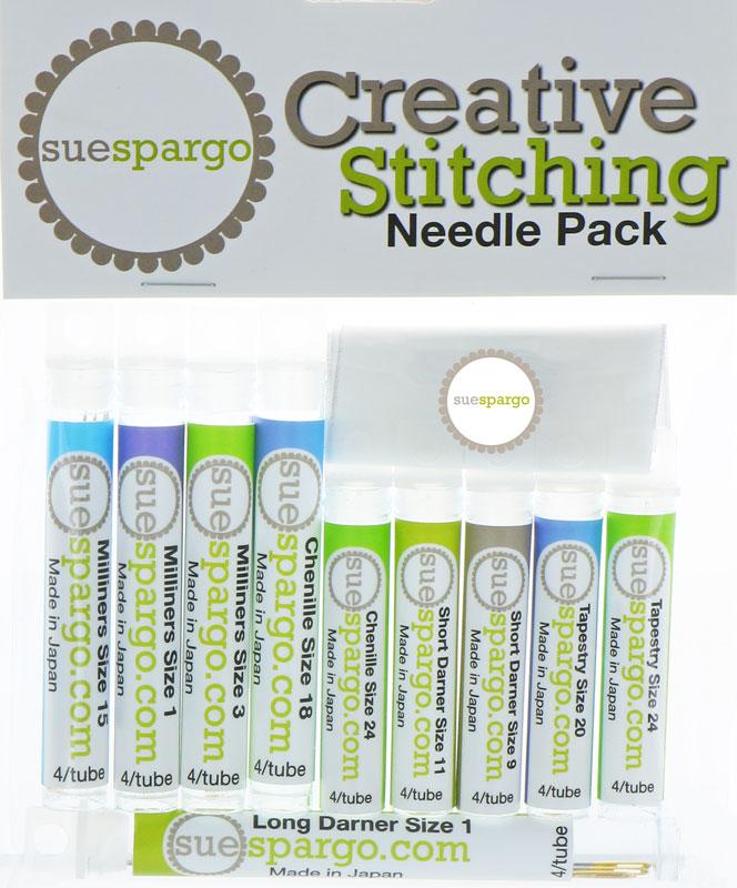 Pack includes one tube (x4 needles per tube) of each of the following needles: Gold Eye Milliners #3, 1, 15, Gold Eye Chenille #24, 18, Short Darner #9, 11, Tapestry #24, 20, Long Darner #1 + fabric printed needle labels - beautifully packaged and ready to hang. Minimum 3.