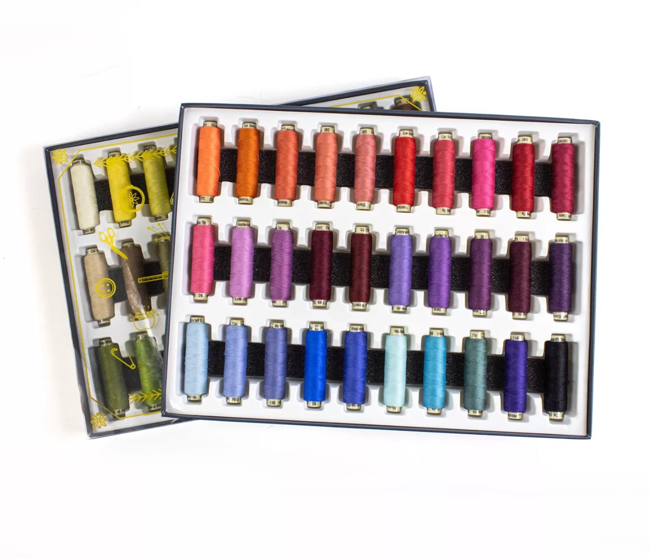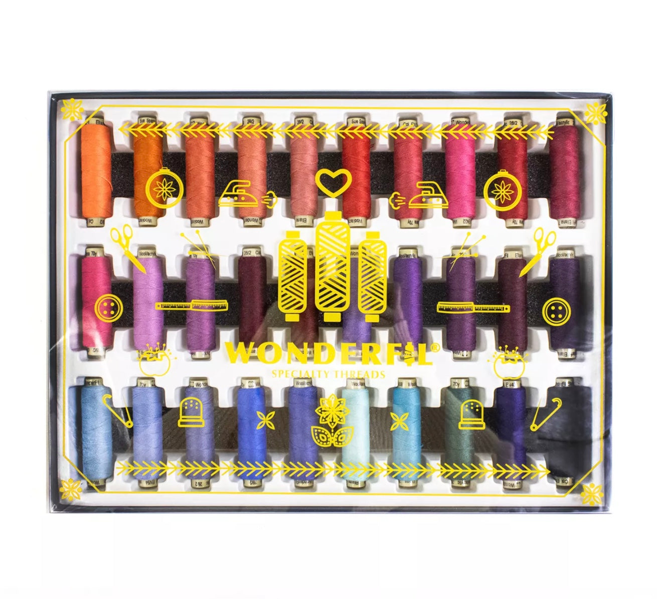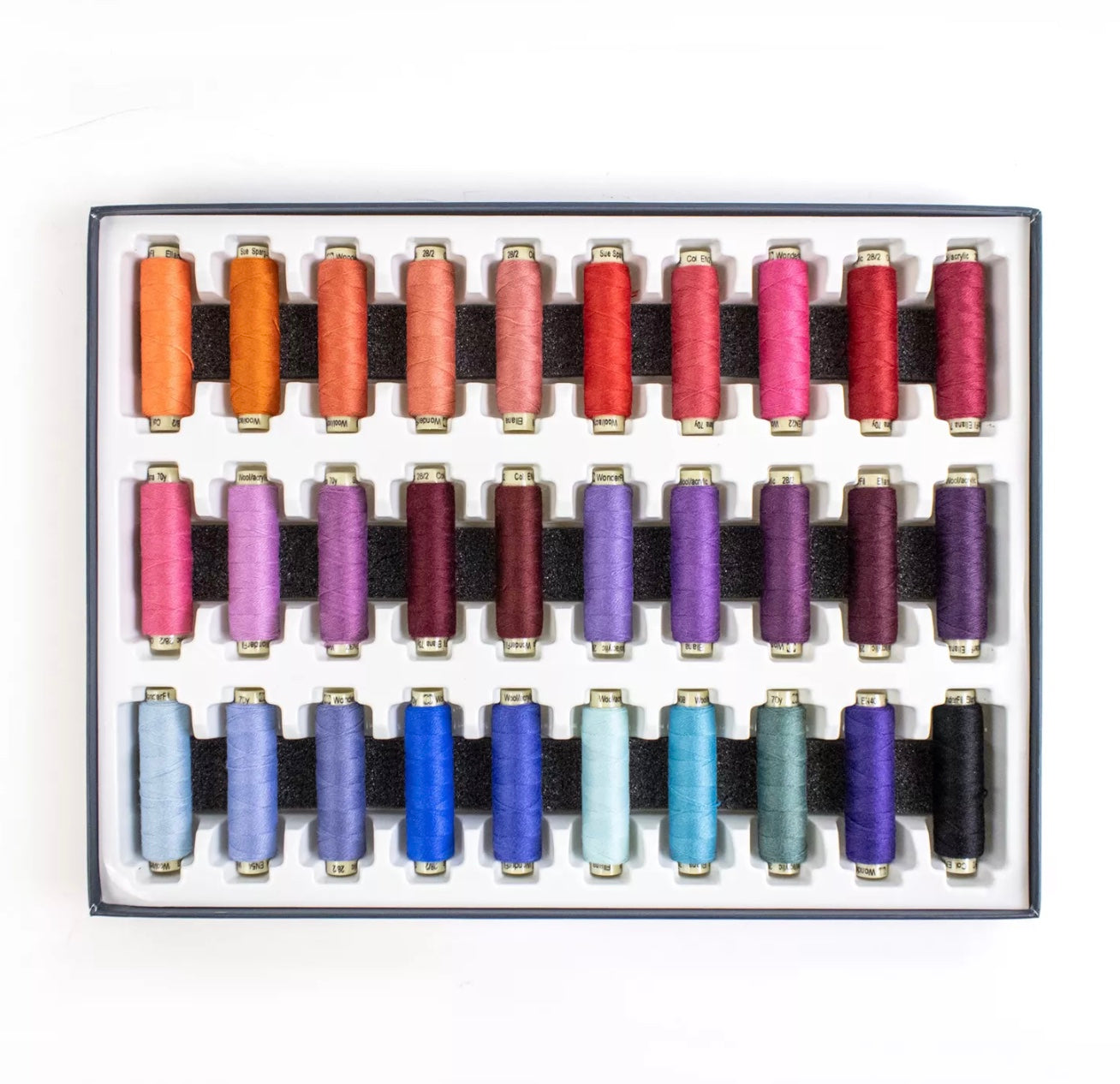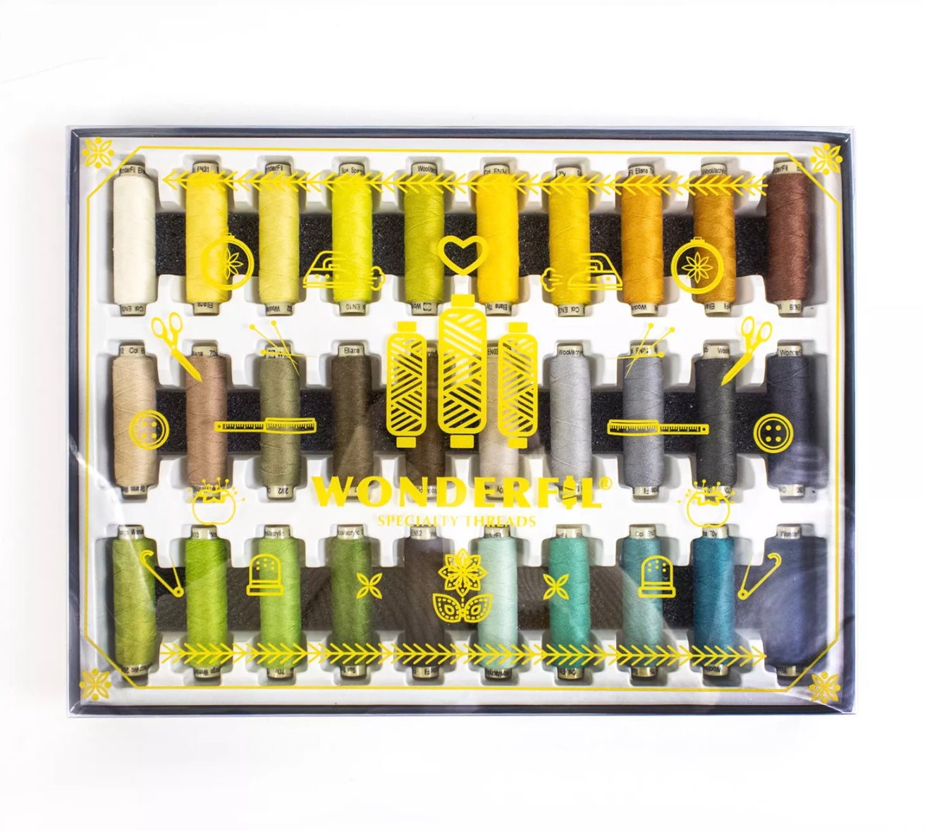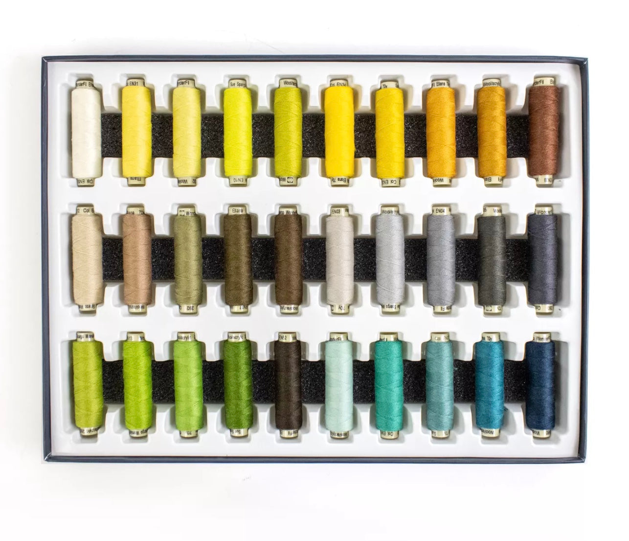 Engineered with hand wool appliqué in mind, Ellana™ is a 12wt 2 ply, 50/50 Merino Wool/Acrylic blend. The wool provides a rich colour palette and soft loft, while the acrylic gives the thread unbelievable strength. Its perfect twist allows the thread to gently coat the edge of wool appliqué, melting into the wool. The result is an almost invisible whipstitch which creates a smooth, clean edge prepared for embellishing. Ellana™ is fray resistant and contains significantly less fuzz, rendering an unparalleled smoothness. Its soft loft is ideal for creating delicate detail when used for hand embroidery. Available in 60 original Sue Spargo colours on manageable 70 yard spools. These colours match Sue's Efina™ cotton thread and wool fabric lines so that projects can easily be coordinated.