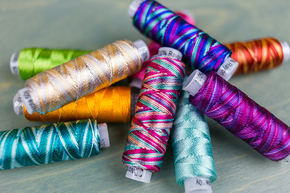 Razzle and Dazzle are an 8 weight rayon thread, perfect for hand work of all types.